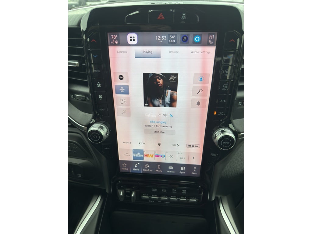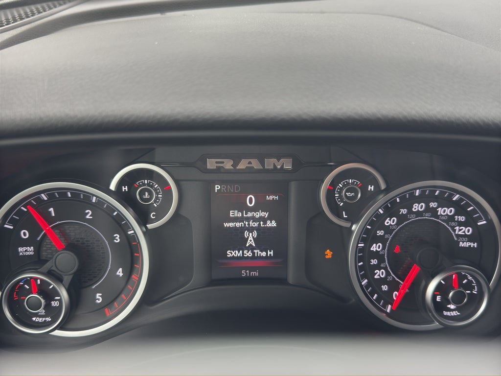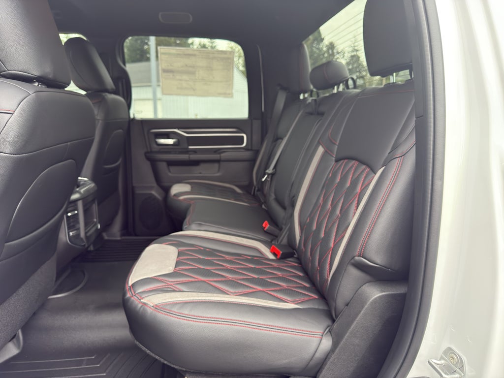 Quick Order Package 24Z Big Horn. Big Horn Level 1 Plus Equipment Group: Google Android Auto; SiriusXM Radio Service; Integrated Voice Command with Bluetooth®; Emergency Vehicle Alert System (EVAS); Glove Box Lamp; 12" Touchscreen Display; Auto Power-Folding Mirrors; Footwell Courtesy Lamp; Anti-Spin Differential Rear Axle; Mirror Running Lights; MOPAR Deployable Bed Step; Alexa Built-In; Apple CarPlay; Power Adjustable Convex Aux Mirrors; Forward and Reverse Utility Lights; Locking Lower Glove Box; Remote Start System; 9 Alpine Speakers with Subwoofer; Dual Glove Boxes; 2nd Row in Floor Storage Bins; Rear View Auto Dim Mirror; Rear Dome with On/off Switch Lamp; LED Bed Lighting; Connectivity - US/Canada; GPS Navigation; 4G LTE Wi-Fi Hot Spot; GPS Antenna Input; Exterior Mirrors with Heating Element; SiriusXM with 360L; Global Telematics Box Module; Connected Travel and Traffic Services; Foam Bottle Insert (door Trim Panel); Black Exterior Mirrors; Big Horn Instrument Panel Badge; Off-Road Info Pages; Selectable Tire Fill Alert; Trailer Tow Pages; HD Radio; Uconnect 5 Navigation with 12.0" Display Radio; Power Heated Folding Telescopic Mirrors; Exterior Mirrors with Supplemental Signals; Steering Wheel Mounted Audio Controls; Exterior Mirrors Courtesy Lamps; Air Conditioning ATC with Dual Zone Control; MOPAR Spray in Bedliner; Power Adjust Mirrors; Luxury Steering Wheel; Power Telescoping Mirrors. Cold Weather Group: Engine Block Heater; MOPAR Winter Front Grille Cover. Night Edition: Gloss Black Nostrils/mic Black Grille; LT285/60R20E OWL On/off Road Tires; Black Exterior Truck Badging; 20" X 8.0" Black Painted Aluminum Wheels; Body Color Grille Surround; Black Interior Accents; Black Wheel Center Hub; Painted Front Bumper; Painted Rear Bumper. Heated Seats and Wheel Group: Heated Front Seats; Heated Steering Wheel. 5th Wheel/gooseneck Towing Prep Group. Anti-Spin Differential Rear Axle. Upfitter Electronic Module (VSIM). Premium Cloth Bucket Seats. Remote Start System. Instrument Panel Mounted Auxiliary Switches. MOPAR Front and Rear Rubber Floor Mats. Rear Wheelhouse Liners. Power 2-Way Driver Lumbar Adjust. Transfer Case Skid Plate Shield. **Equipment listed is based on original vehicle build and subject to change. Please confirm the accuracy of the included equipment by calling the dealer prior to purchase.**