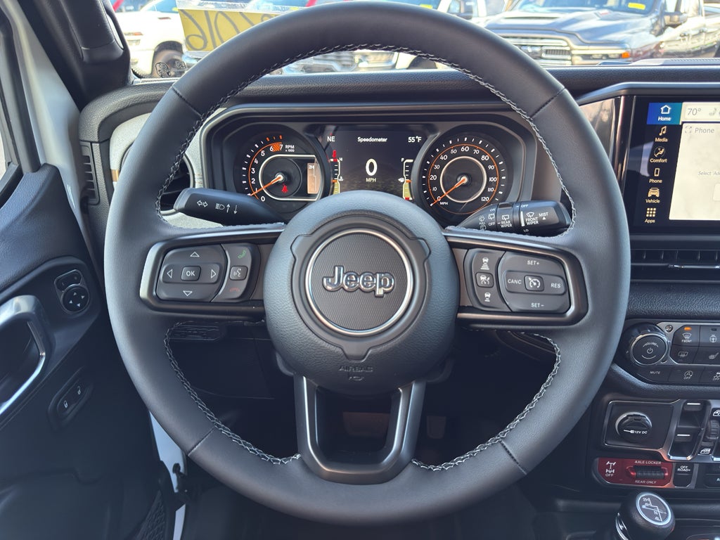 This model's Forward Collision Warning system alerts the driver to potential front-end collisions, enhancing safety. This Jeep Wrangler comes equipped with Android Auto for seamless smartphone integration on the road. This mid-size suv has auto-adjust speed for safe following. This 2026 Jeep Wrangler offers Automatic Climate Control for personalized comfort. This unit offers Apple CarPlay for seamless connectivity. See what's behind you with the back up camera on this model. An off-road package is equipped on the Jeep Wrangler. Keep your hands warm all winter with a heated steering wheel in this 2026 Jeep Wrangler . Bluetooth® technology is built into this vehicle, keeping your hands on the steering wheel and your focus on the road. Never get into a cold vehicle again with the remote start feature on the Jeep Wrangler. This Jeep Wrangler shines with clean polished lines coated with an elegant white finish. When you encounter slick or muddy roads, you can engage the four wheel drive on this unit and drive with confidence.