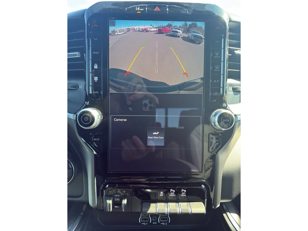 Never get into a cold vehicle again with the remote start feature on it. This unit is equipped with the latest generation of XM/Sirius Radio. Keep your hands warm all winter with a heated steering wheel in the vehicle . The installed navigation system will keep you on the right path. The vehicle features a hands-free Bluetooth® phone system. This model offers Android Auto for seamless smartphone integration. Protect this 1/2 ton pickup from unwanted accidents with a cutting edge backup camera system. This vehicle's Forward Collision Warning system alerts the driver to potential front-end collisions, enhancing safety. This model offers Automatic Climate Control for personalized comfort. The rear parking assist technology on this vehicle will put you at ease when reversing. The system alerts you as you get closer to an obstruction. This 2026 Ram 1500 offers Apple CarPlay for seamless connectivity. This unit has automated speed control that adjusts to maintain a safe following distance, enhancing highway driving convenience.