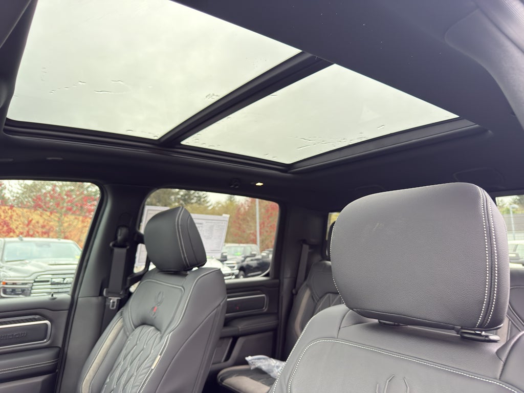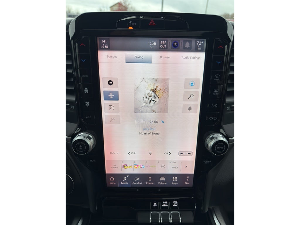 Quick Order Package 27Z Big Horn. Big Horn Level 2 Equipment Group: Google Android Auto; SiriusXM Radio Service; USB Host Flip; Power Adjustable Pedals; Leather Wrapped Steering Wheel; Integrated Voice Command with Bluetooth®; 12" Touchscreen Display; Glove Box Lamp; Auto Power-Folding Mirrors; 115V Auxiliary Rear Power Outlet; Media Hub with 2 Charge Only USBs; Heated Front Seats; Security Alarm; Black Premium Power Mirrors; Apple CarPlay; Premium Overhead Console; 9 Amplified Speakers with Subwoofer; Disassociated Touchscreen Display; Secondary Active Grille Shutters; Wireless Charging Pad; Body Color Fender Flares; Remote Tailgate Release; 115V Auxiliary Power Outlet; LED Dome Lamp with On/off Switch; Universal Garage Door Opener; 2nd Row in Floor Storage Bins; Sun Visors with Illuminated Vanity Mirrors; LED Footwell Lighting; Rear Window Defroster; Integrated Center Stack Radio; Rear View Auto Dim Mirror; Rear Power Sliding Window; Connectivity - US/Canada; GPS Navigation; 4G LTE Wi-Fi Hot Spot; GPS Antenna Input; Overhead LED Lamps; Exterior Mirrors with Heating Element; Auto Dim Exterior Driver Mirror; SiriusXM with 360L; Global Telematics Box Module; Connected Travel and Traffic Services; Heated Steering Wheel; Configurable Drive Mode; 400W Inverter; HD Radio; Deluxe Cloth Bucket Seats; Uconnect 5 Navigation with 12.0" Display Radio; Exterior Mirrors with Supplemental Signals; Steering Wheel Mounted Audio Controls; Exterior Mirrors Courtesy Lamps; Air Conditioning ATC with Dual Zone Control; Cluster 7.0" TFT Color Display; Convex Wide-Angle Exterior Mirror Insert. Night Edition. Bed Utility Group. Dual-Pane Panoramic Sunroof. 9 Amplified Speakers with Subwoofer. Anti-Spin Differential Rear Axle. 33 Gallon Fuel Tank. Cluster 12" TFT Color Display. 3.92 Rear Axle Ratio. Rear Underseat Compartment Storage. **Equipment listed is based on original vehicle build and subject to change. Please confirm the accuracy of the included equipment by calling the dealer prior to purchase.**