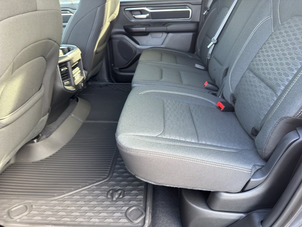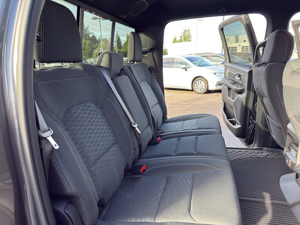 Quick Order Package 27Z Big Horn. Big Horn Level 2 Equipment Group: Google Android Auto; SiriusXM Radio Service; USB Host Flip; Power Adjustable Pedals; Leather Wrapped Steering Wheel; Integrated Voice Command with Bluetooth®; 12" Touchscreen Display; Glove Box Lamp; Auto Power-Folding Mirrors; 115V Auxiliary Rear Power Outlet; Media Hub with 2 Charge Only USBs; Heated Front Seats; Security Alarm; Black Premium Power Mirrors; Apple CarPlay; Premium Overhead Console; 9 Amplified Speakers with Subwoofer; Disassociated Touchscreen Display; Secondary Active Grille Shutters; Wireless Charging Pad; Body Color Fender Flares; Remote Tailgate Release; 115V Auxiliary Power Outlet; LED Dome Lamp with On/off Switch; Universal Garage Door Opener; 2nd Row in Floor Storage Bins; Sun Visors with Illuminated Vanity Mirrors; LED Footwell Lighting; Rear Window Defroster; Integrated Center Stack Radio; Rear View Auto Dim Mirror; Rear Power Sliding Window; Connectivity - US/Canada; GPS Navigation; 4G LTE Wi-Fi Hot Spot; GPS Antenna Input; Overhead LED Lamps; Exterior Mirrors with Heating Element; Auto Dim Exterior Driver Mirror; SiriusXM with 360L; Global Telematics Box Module; Connected Travel and Traffic Services; Heated Steering Wheel; Configurable Drive Mode; 400W Inverter; HD Radio; Deluxe Cloth Bucket Seats; Uconnect 5 Navigation with 12.0" Display Radio; Exterior Mirrors with Supplemental Signals; Steering Wheel Mounted Audio Controls; Exterior Mirrors Courtesy Lamps; Air Conditioning ATC with Dual Zone Control; Cluster 7.0" TFT Color Display; Convex Wide-Angle Exterior Mirror Insert. Night Edition. Bed Utility Group. Multi-Function Tailgate. 9 Amplified Speakers with Subwoofer. Anti-Spin Differential Rear Axle. 33 Gallon Fuel Tank. Granite Crystal Met CC. Cluster 12" TFT Color Display. MOPAR Front and Rear Rubber Floor Mats. 3.92 Rear Axle Ratio. Rear Wheelhouse Liners. Rear Underseat Compartment Storage. **Equipment listed is based on original vehicle build and subject to change. Please confirm the accuracy of the included equipment by calling the dealer prior to purchase.**