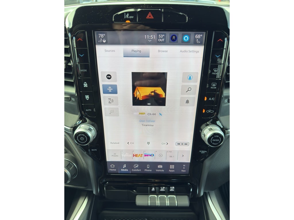 It offers Automatic Climate Control for personalized comfort. This 1/2 ton pickup features a hands-free Bluetooth® phone system. The installed navigation system will keep you on the right path. Protect this vehicle from unwanted accidents with a cutting edge backup camera system. This unit has automated speed control that adjusts to maintain a safe following distance, enhancing highway driving convenience. Never get into a cold vehicle again with the remote start feature on this 1/2 ton pickup. This model offers Apple CarPlay for seamless connectivity. It offers Android Auto for seamless smartphone integration. with XM/Sirus Satellite Radio you are no longer restricted by poor quality local radio stations while driving this unit. Anywhere on the planet, you will have hundreds of digital stations to choose from. The rear parking assist technology on the Ram 1500 will put you at ease when reversing. The system alerts you as you get closer to an obstruction.