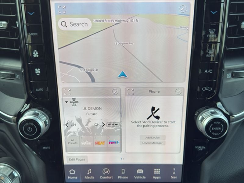 This 1/2 ton pickup is pure luxury with a heated steering wheel. This unit's Forward Collision Warning system alerts the driver to potential front-end collisions, enhancing safety. This 1/2 ton pickup offers Apple CarPlay for seamless connectivity. This Ram 1500 comes equipped with Android Auto for seamless smartphone integration on the road. Start this 2026 Ram 1500 from inside with remote start. This model features a hands-free Bluetooth® phone system. The installed navigation system will keep you on the right path. The rear parking assist technology on it will put you at ease when reversing. The system alerts you as you get closer to an obstruction. This unit has automated speed control that adjusts to maintain a safe following distance, enhancing highway driving convenience. See what's behind you with the back up camera on this vehicle. The Ram 1500 keeps you comfortable with Auto Climate. The leather seats in this vehicle are a must for buyers looking for comfort, durability, and style.