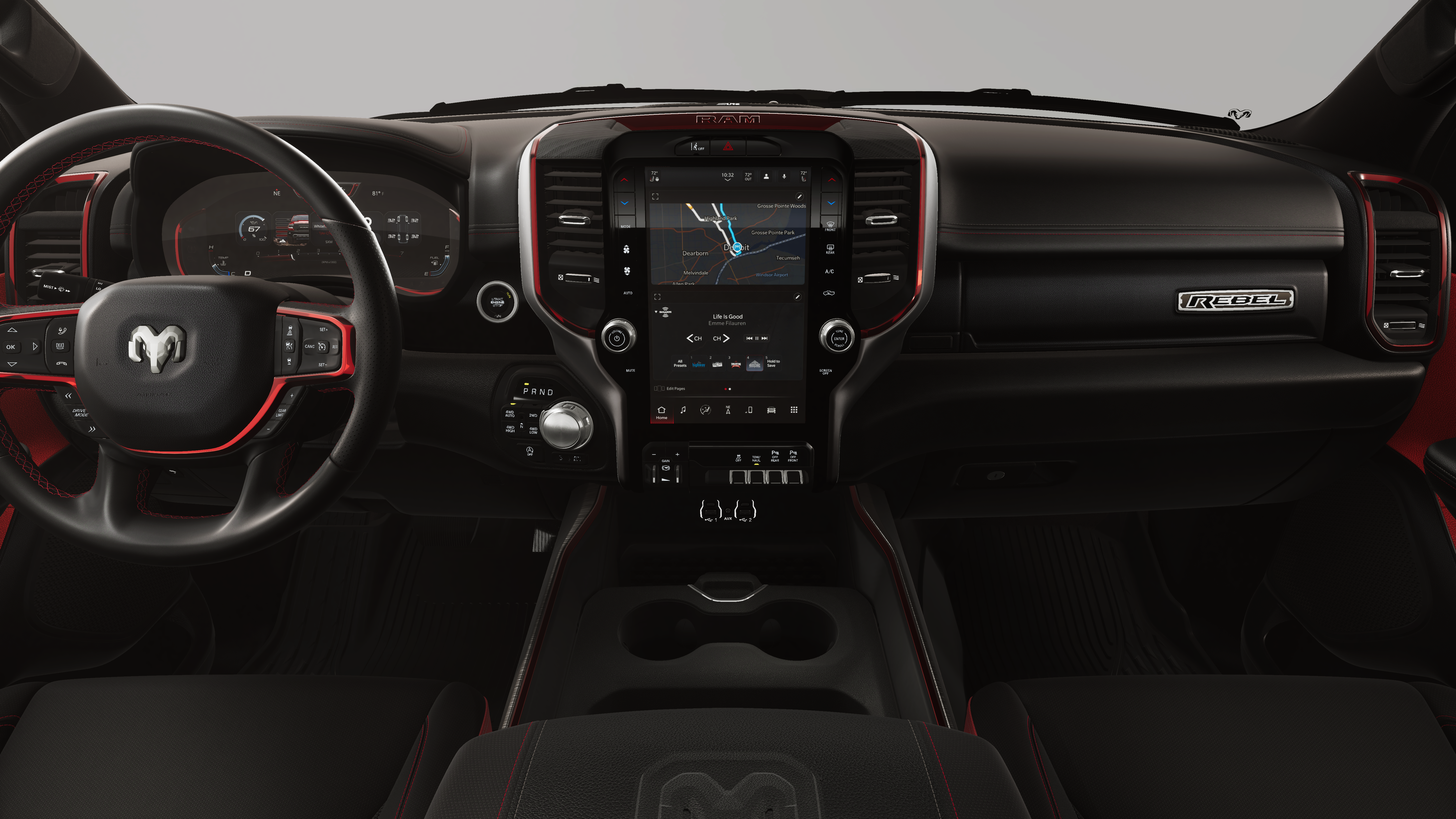 - 4-Wheel Disc Brakes w/4-Wheel ABS, Front Vented Discs, Brake Assist, Hill Descent Control, Hill Hold Control and Electric Parking Brake