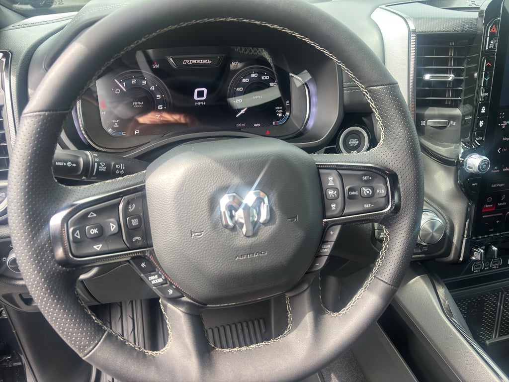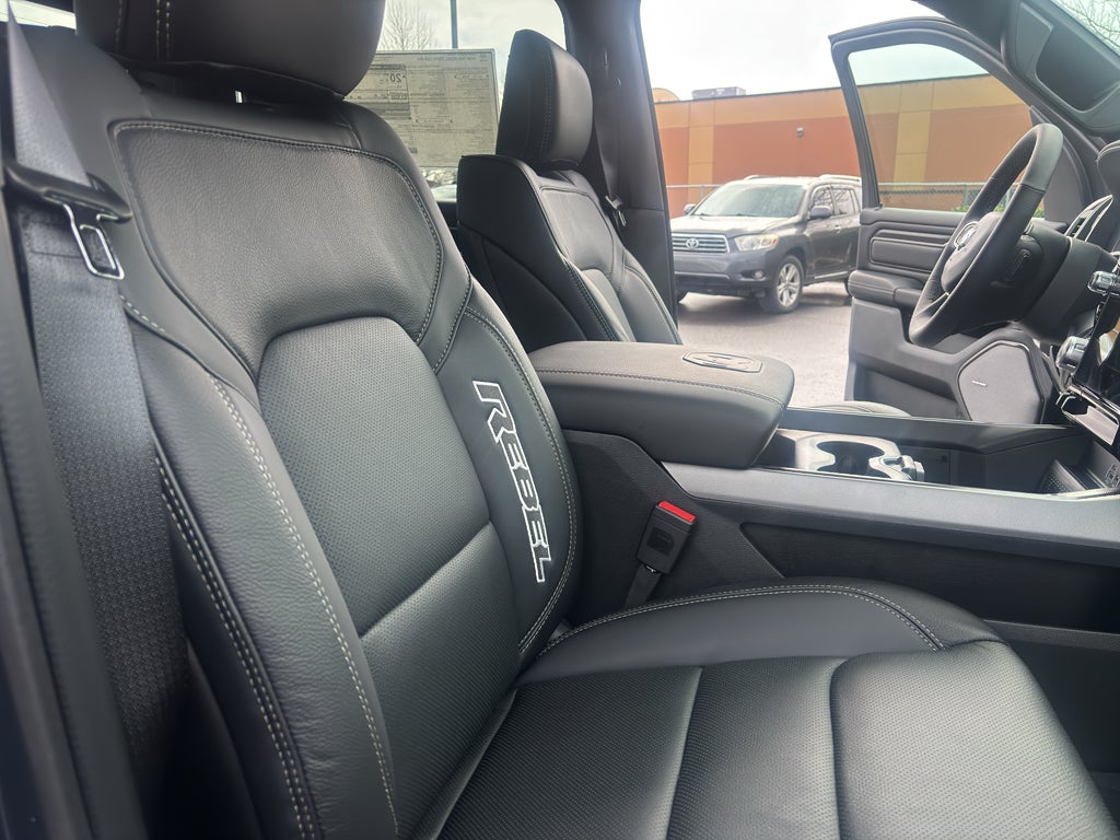 Technology Group: Head Up Display; LED CHMSL Lamp; Digital Rearview Mirror; 12-Way/1-way Trailer Connector. Quick Order Package 21W Rebel. Rebel Level 2 Equipment Group: Google Android Auto; SiriusXM Radio Service; USB Host Flip; Rear Window Defroster; Rain Sensitive Windshield Wipers; Integrated Center Stack Radio; Power Adjustable Pedals with Memory; Front Passenger Interactive Display; Integrated Voice Command with Bluetooth®; Power 2-Way Passenger Lumbar Adjust; Connectivity - US/Canada; Auto Power-Folding Mirrors; GPS Navigation; 4G LTE Wi-Fi Hot Spot; 115V Auxiliary Rear Power Outlet; GPS Antenna Input; Media Hub with 2 Charge Only USBs; Exterior Mirrors with Heating Element; Proximity Approach/departure Lamps; Auto Dim Exterior Driver Mirror; SiriusXM with 360L; Accent Color Door Handles; Global Telematics Box Module; Connected Travel and Traffic Services; Heated Second Row Seats; Power Adjust 8-Way Front Passenger Seat; Security Alarm; Apple CarPlay; Black Painted Exterior Mirrors Caps; Off-Road Information Pages; Exterior Mirrors Approach Lamps; Disassociated Touchscreen Display; HD Radio; Smartphone as a Key Capable; 14.4" Touchscreen Display; Accent Color Premium Power Mirrors; Dual Wireless Charging Pad; Exterior Mirrors with Supplemental Signals; Exterior Mirrors Courtesy Lamps; Uconnect 5 Nav with 14.4" Display; Harman/kardon 19 Speaker Premium Sound; 2-Door Passive Entry. Front Door Locks; Accent Color Tailgate Handle; Exterior Mirrors with Memory; Driver Seat Memory; Power Tailgate; Convex Wide-Angle Exterior Mirror Insert; Radio/driver Seat/mirrors/pedals Memory. 4-Corner Air Suspension. Dual-Pane Panoramic Sunroof. Lux Leather Trimmed Bucket Seats. MOPAR Black Tubular Side Steps. Trailer Brake Control. Forged Blue Metallic. Forged Blue Metallic. **Equipment listed is based on original vehicle build and subject to change. Please confirm the accuracy of the included equipment by calling the dealer prior to purchase.**